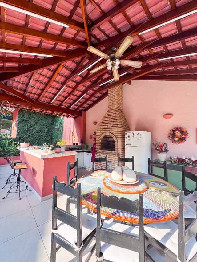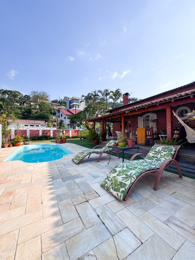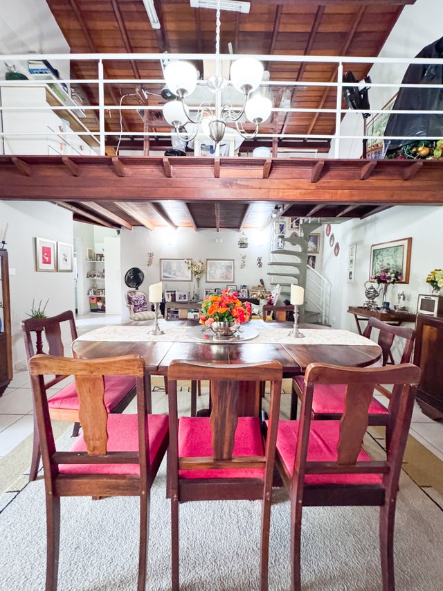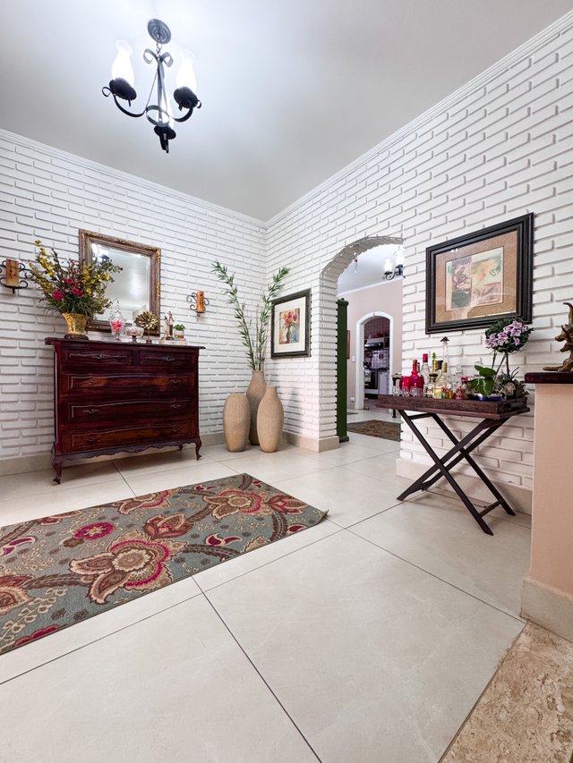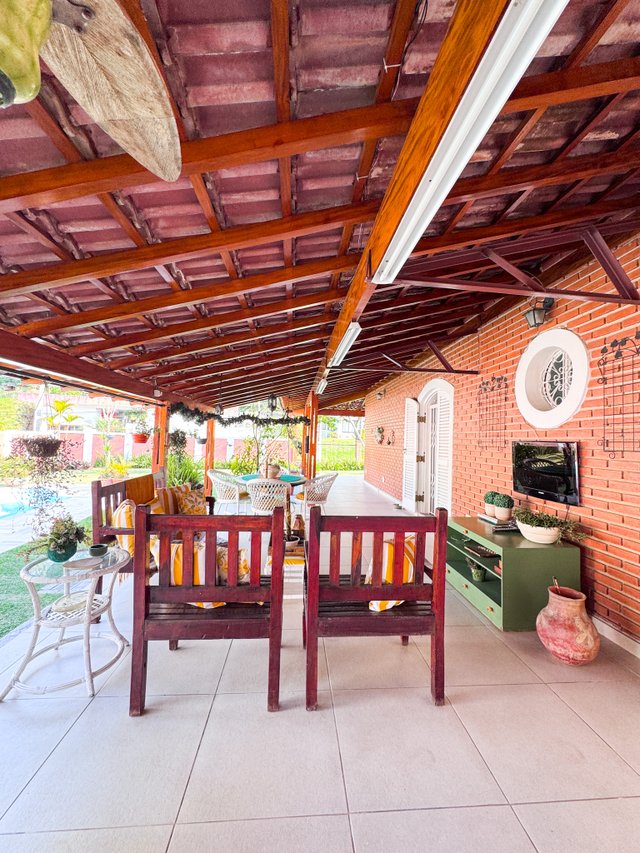 A área social é composta por sala de estar, sala de jantar e cozinha planejada, escritorio , todos distribuídos para proporcionar fluidez e conforto no uso cotidiano. A residência ainda dispõe de varanda ampla, espaço gourmet com churrasqueira, piscina e jardim externo, além de um pomar frutifero completamente formado.